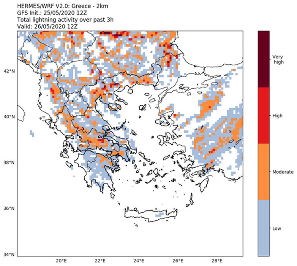 Περίπου 50 κεραυνοί είχαν ανιχνευθεί στην ευρύτερη περιοχή από το «ZEUS» μέχρι τις 11:00 το πρωί.