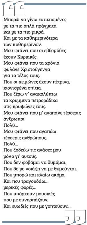 Μπορώ να γίνω ευτυχισμένος με τα πιο απλά πράγματα