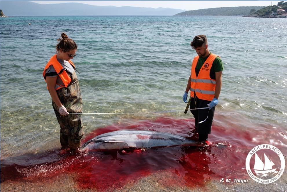 Ειδικότερα, όπως έκανε γνωστό το Ινστιτούτο, τα πτερύγια των δελφινιών είχαν κοπεί με μαχαίρι, δηλαδή είχαν πεταχτεί στη θάλασσα ζωντανά για να πνιγούν. Προσπαθώντας να προσδιοριστεί ποιος θα μπορούσε να έχει διαπράξει αυτό το έγκλημα, το «Αρχιπέλαγος» μελέτησε τα θαλάσσια ρεύματα που επικρατούσαν στην περιοχή τις ημέρες πριν από τον εντοπισμό τους.