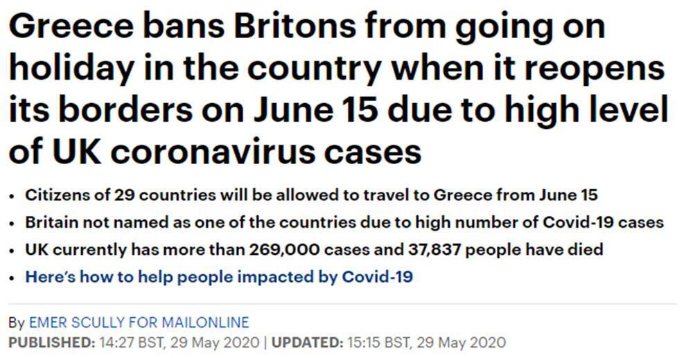Μάλιστα, το βρετανικό ΜΜΕ τονίζει πως η Ελλάδα θα εφαρμόσει το συγκεκριμένο μέτρο από τις 15 Ιουνίου, την ημερομηνία δηλαδή που θα συμβεί η επανέναρξη του τουρισμού.