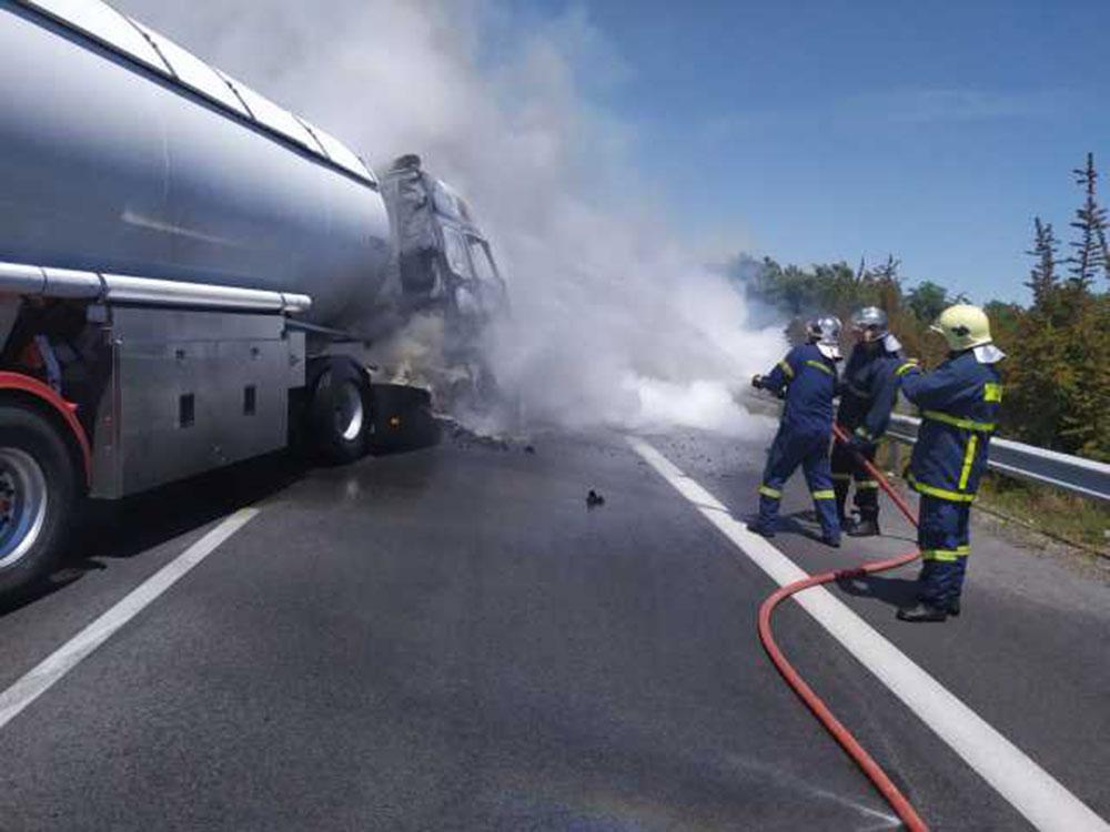 Σύμφωνα με τη Γενική Περιφερειακή Αστυνομική Διεύθυνση Κεντρικής Μακεδονίας, λίγο μετά τη μία το μεσημέρι, κάτω από άγνωστες έως τώρα συνθήκες, το βυτιοφόρο έφυγε από την πορεία του και προσέκρουσε σε τσιμεντένιο διαχωριστικό, στο ρεύμα προς Θεσσαλονίκη.