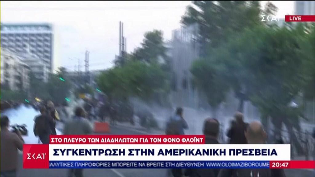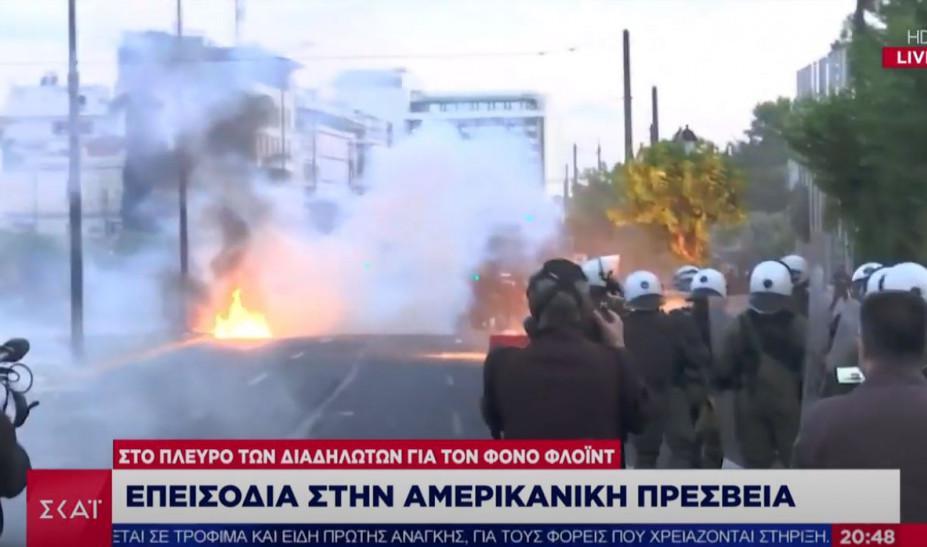 Ομάδα αγνώστων, όταν η πορεία ήταν έξω από την πρεσβεία των ΗΠΑ, πέταξε δεκάδες βόμβες μολότοφ και πέτρες κατά δυνάμεων των ΜΑΤ και οι αστυνομικοί απάντησαν με χρήση δακρυγόνων και χειροβομβίδες κρότου – λάμψης.