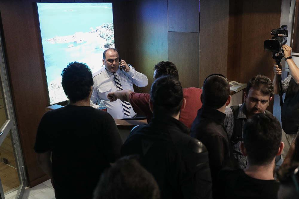 Οι διαδηλωτές απαιτούν να συναντηθούν με τον υπουργό Τουρισμού Χάρη Θεοχάρη και κάποιοι από αυτούς μπήκαν στο κτήριο.