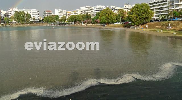 Όπως θα δείτε, λίγη ώρα μετά τη βροχόπτωση που σημειώθηκε, ο αγωγός ομβρίων υδάτων που είναι εγκαταστημένος στη περιοχή, άρχισε να αδειάζει λύματα και λάσπη με αποτέλεσμα η θάλασσα να μετατραπεί γρήγορα σε «βούρκο», σύμφωνα με το eviazoom.gr.