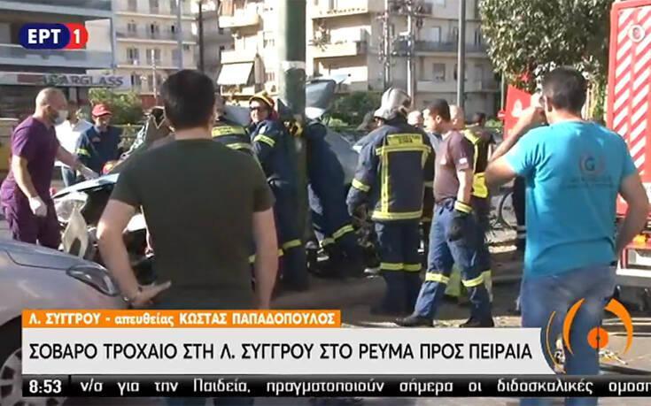 Όπως μετέδωσε η ΕΡΤ, το αυτοκίνητο αναποδογύρισε και καρφώθηκε σε κολόνα, με αποτέλεσμα η γυναίκα να εγκλωβιστεί.