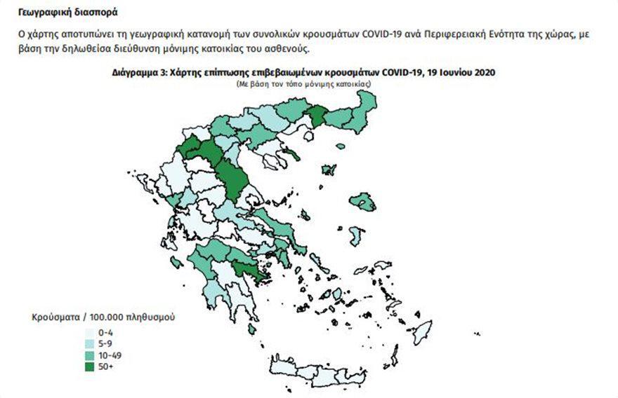 Τέλος, έχουμε έναν ακόμα καταγεγραμμένο θάνατο και 189 θανάτους συνολικά στη χώρα. 59 (31,2%) γυναίκες και οι υπόλοιποι άνδρες. Η διάμεση ηλικία των θανόντων συμπολιτών μας ήταν τα 76 έτη και το 95,8% είχε κάποιο υποκείμενο νόσημα ή/και ηλικία 70 ετών και άνω.