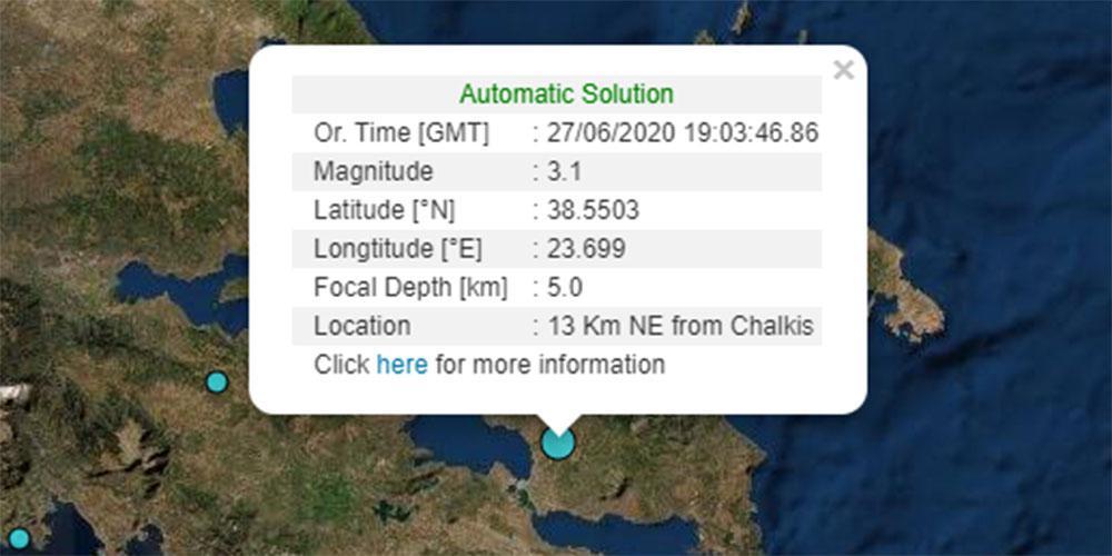 Ο σεισμός σύμφωνα με το Γεωδυναμικό Ινστιτούτο, είχε βάθος 5 χλμ και σημειώθηκε 13 χλμ Βορειοανατολικά της Χαλκίδας.