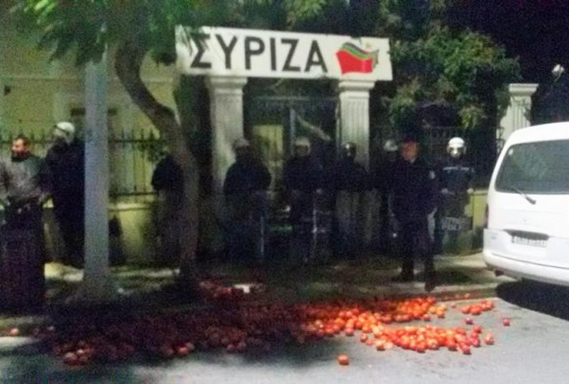 Φτάνοντας οι αγρότες, ξεκαθάρισαν πως δεν έχουν σκοπό να προκαλέσουν επεισόδια και με βρισιές κατά της Κυβέρνησης που δεν κατάφερε να λύσει το πρόβλημα παρά τις δεσμεύσεις, πέταξαν τις ντομάτες και αποχώρησαν.