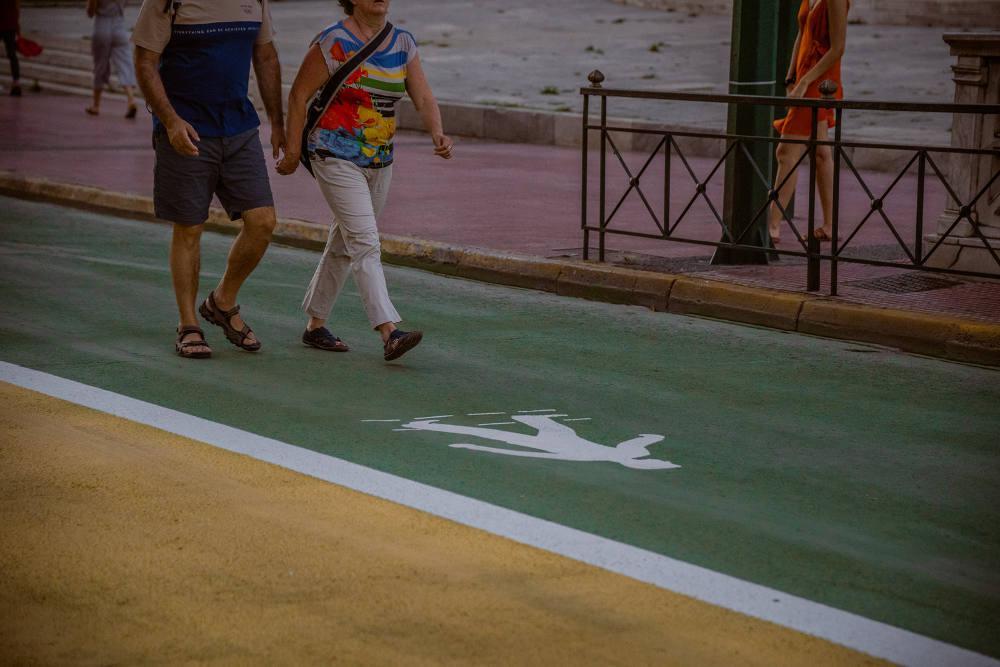 Είναι χαρακτηριστική η εικόνα των πολιτών που άρχισαν να χρησιμοποιούν τον ποδηλατόδρομο της Πανεπιστημίου για να κατευθυνθούν προς τη νέα πλατεία της Ομόνοιας αλλά και εκείνων που απολαμβάνουν τον καλοκαιρινό περίπατό τους, κυρίως τις απογευματινές ώρες.