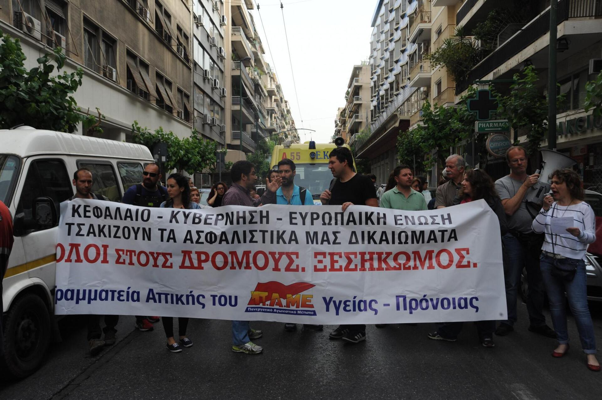 Οι εργαζόμενοι στην Υγεία διεκδικούν δωρεάν δημόσια περίθαλψη, με επαρκή στελέχωση και χρηματοδότηση, κατάργηση των μνημονίων και ανάκτηση των μνημονιακών απωλειών.