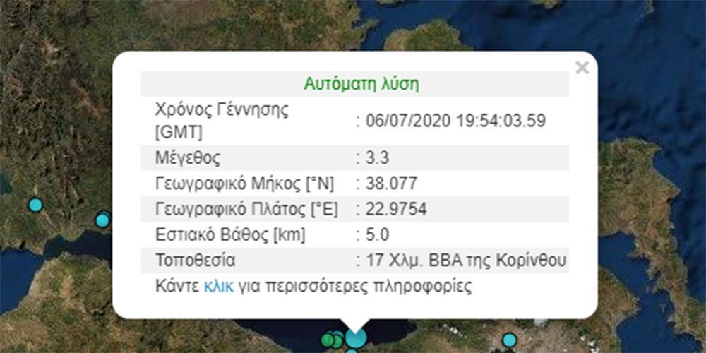 Σύμφωνα με το Γεωδυναμικό Ινστιτούτο του Εθνικού Αστεροσκοπείου Αθηνών το επίκεντρο του σεισμού εντοπίζεται 17 χλμ. βορειοανατολικά της Κορίνθου και το εστιακό βάθος υπολογίζεται στα 5 χλμ.