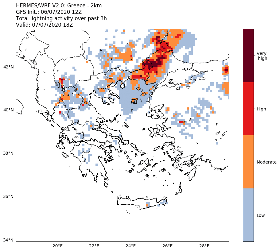 Παράλληλα, στους ακόλουθους χάρτες παρουσιάζεται η κεραυνική δραστηριότητα που αναμένεται να εκδηλωθεί τις μεσημεριανές και βραδινές ώρες της Τρίτης 07/07 σύμφωνα με το σύστημα TALOS.