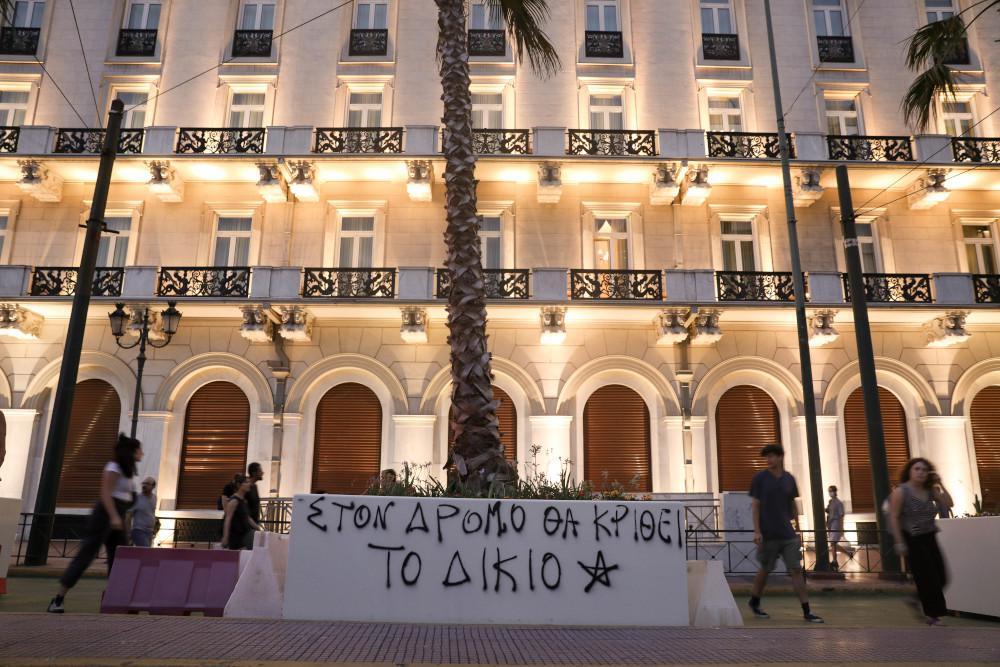 Βρήκαν την ευκαιρία να μπουν μέσα στην πορεία για το νομοσχέδιο που απαγορεύει τις διαδηλώσεις και όπως φαίνεται στις φωτογραφίες, έγραψαν συνθήματα με μπογιές στις ζαρντινιέρες, που κοσμούν τον Μεγάλο Περίπατο στην οδό Πανεπιστημίου. «Στον δρόμο θα κριθεί το δίκιο», γράφει ένα σύνθημα, ενώ ένα άλλο σημειώνει: «Μπάχαλα παντού».