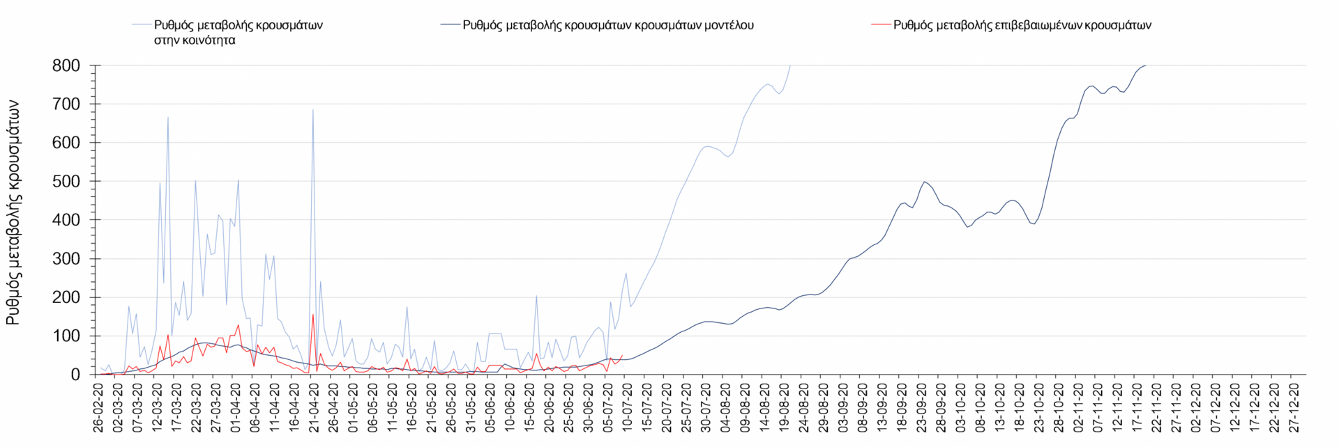 Υπολογίστηκε ότι ο αριθμός κρουσμάτων που καταγράφεται την τελευταία εβδομάδα αντιστοιχεί σε περίπου 55 ασυμπτωματικούς φορείς που μπαίνουν στη χώρα (τουρίστες και γηγενείς που επιστρέφουν) την ημέρα. Αυτό, κατά τους επιστήμονες, μπορεί να οδηγήσει σε αναζωπύρωση της επιδημίας από το τέλος Ιούλη μέχρι το Δεκαπενταύγουστο.