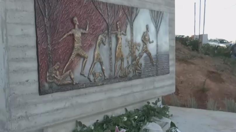 Το μνημείο βρίσκεται στο Νέο Βουτζά και συμβολίζει τους ανθρώπους που τρέχανε για να σωθούν από τις φλόγες.