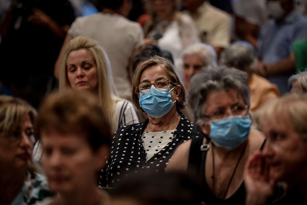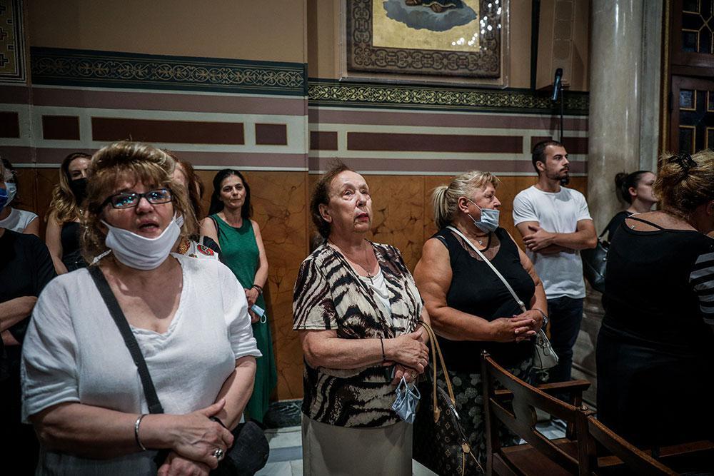 Το «παρών» ωστόσο έδωσε και πλήθος πιστών, με πολλούς να παρακολουθούν την τελετή και άλλους να μπαίνουν στο ναό, να προσεύχονται και να αποχωρούν, προκειμένου να μην δημιουργηθεί συνωστισμός.