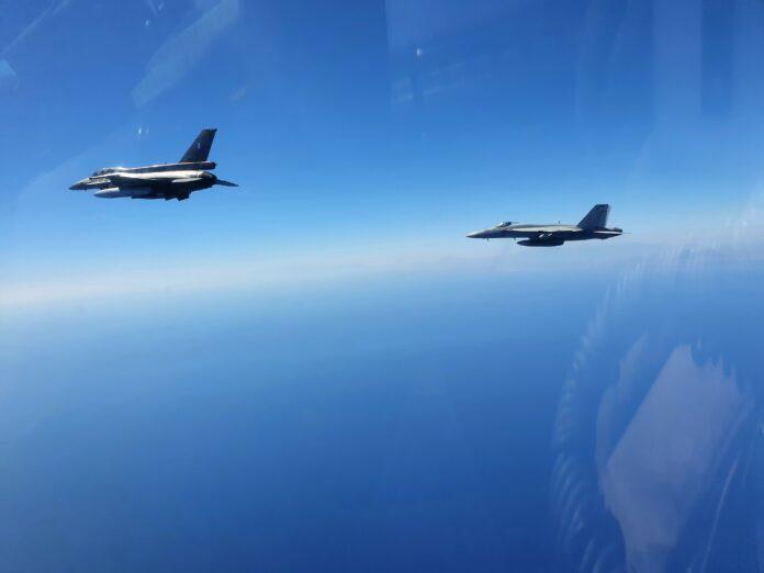 Επιπρόσθετα, αριθμός αεροσκαφών της ΠΑ εκτέλεσε εκπαίδευση εναέριας μάχης με τα αεροσκάφη του Αεροπλανοφόρου σε ρόλο τόσο επιτιθέμενου όσο και αμυνόμενου, ενώ κατά τη διάρκεια της ημέρας εκτελέσθηκαν πυρά Δυτικά Κρήτης και στο Πεδίο Βολής ΚΑΡΑΒΙΑ».