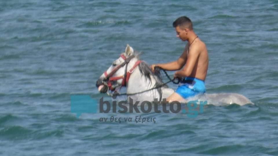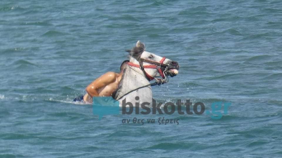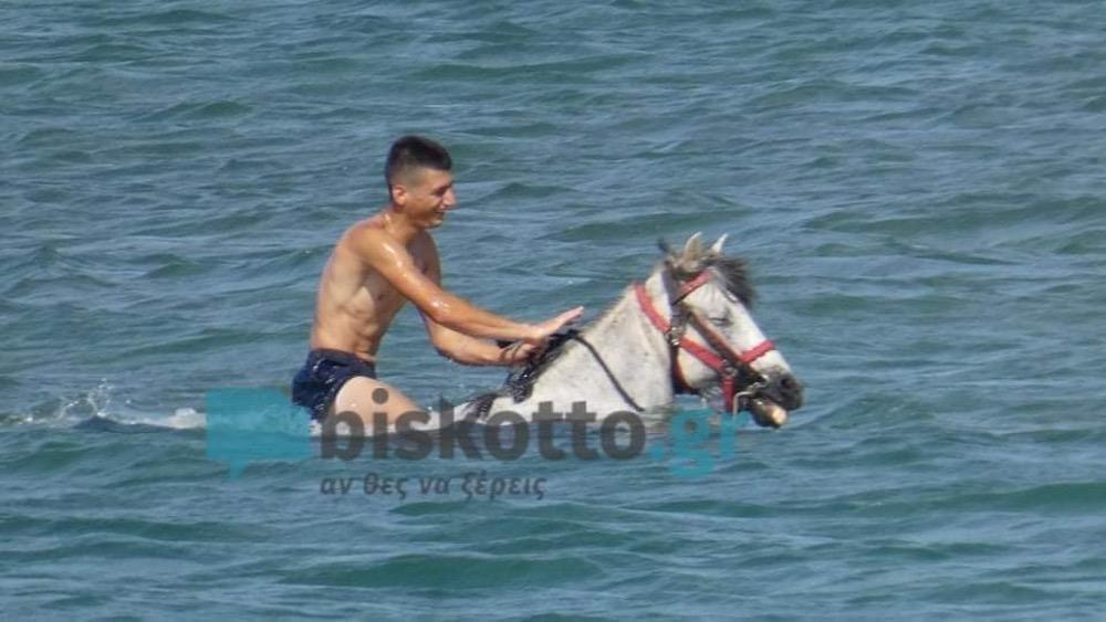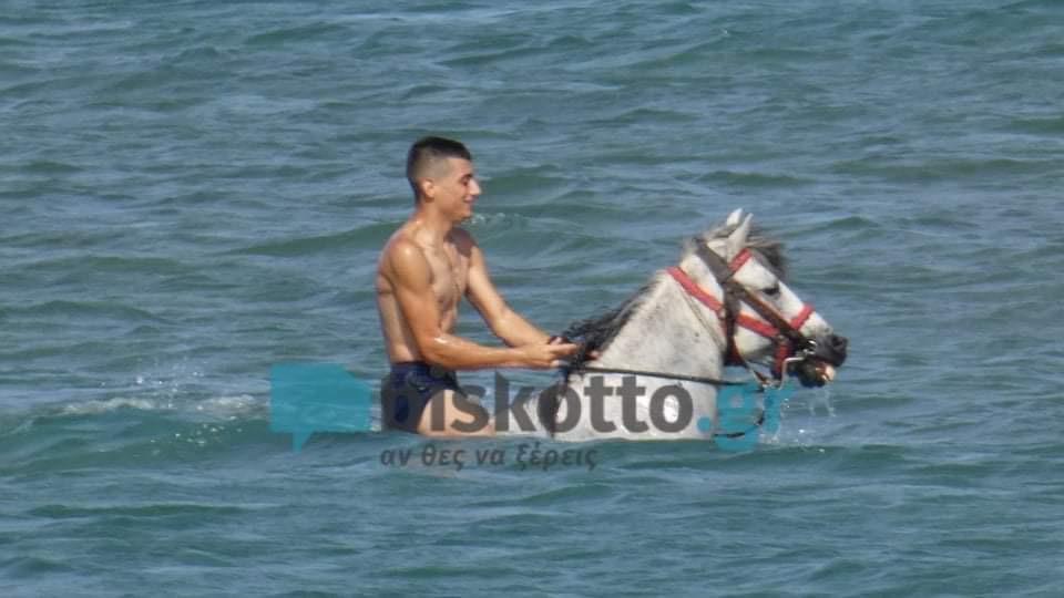 Συγκεκριμένα στην παραλία του Τελωνείου Κισάμου Χανίων βρέθηκε μια παρέα νεαρών φίλων που έδωσαν έτσι την ευκαιρία στο «γκρι άτι» να ξεκουραστεί για λίγα λεπτά μέσα στη θάλασσα.