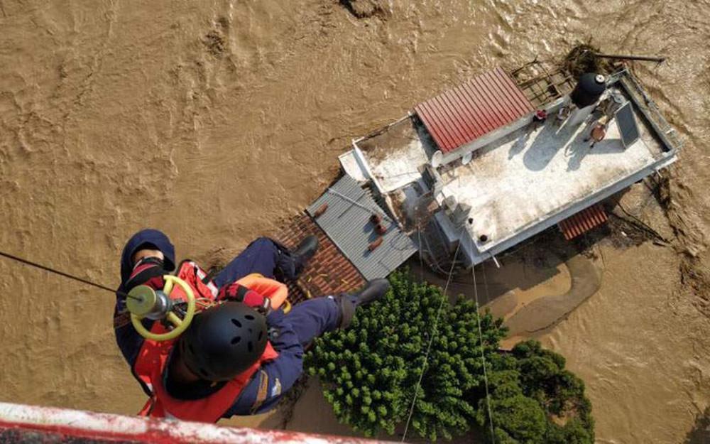 Δεν συμβαίνει όμως το ίδιο νότια της Χαλκίδας εκεί όπου οι πυροσβέστες αδυνατούν να φτάσουν στα σπίτια γιατί οι δρόμοι είναι κομμένοι και ζήτησαν ενισχύσεις από ελικόπτερο ώστε να ξεκινήσουν απεγκλωβισμοί ανθρώπων από τις ταράτσες των σπιτιών.
