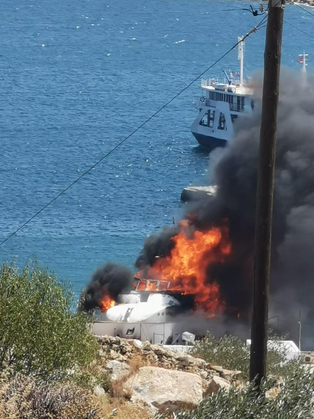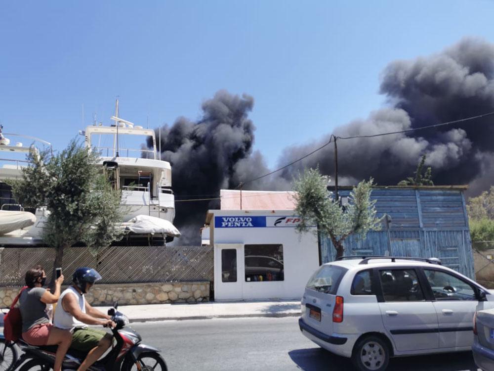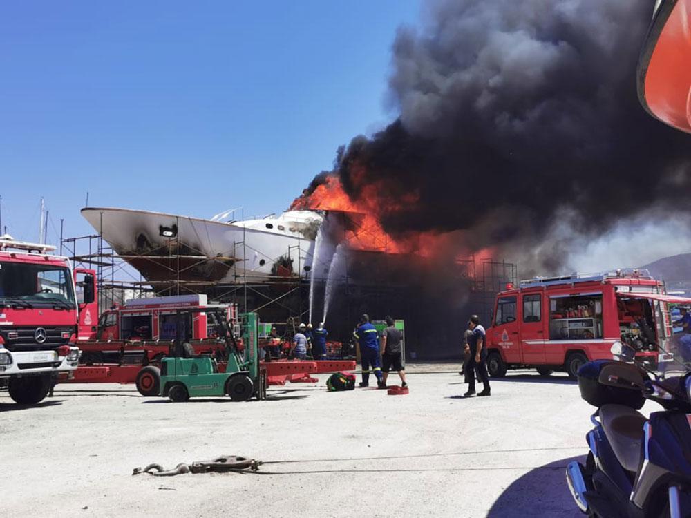 Η πυρκαγιά σημειώθηκε μέσα στις εγκαταστάσεις, σε μεγάλη θαλαμηγό η οποία βρισκόταν εκεί για επισκευή και έγινε στάχτη μέσα σε λίγα λεπτά. Μάλιστα, πριν τη φωτιά σημειώθηκε δυνατή έκρηξη, σύμφωνα με την ιστοσελίδα cyclades24.gr.