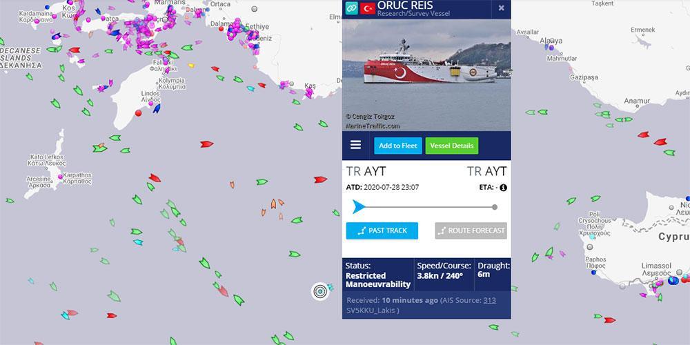 Σημειώνεται ότι το τουρκικό σκάφος, το οποίο συνοδεύεται από δύο άλλα σκάφη, έχει ανοίξει και τον πομπό του όπως φαίνεται στην ιστοσελίδα Μarinetraffic.