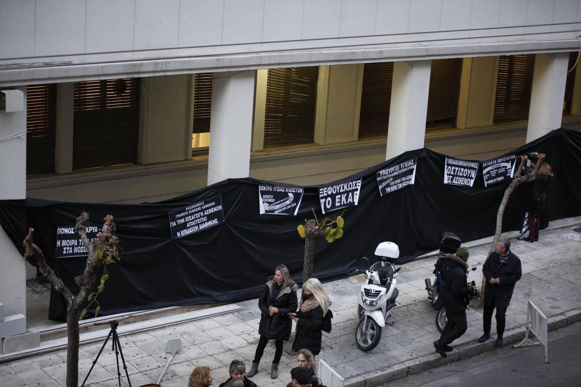 Η κινητοποίηση πραγματοποιείται στο πλαίσιο της στάσης εργασίας των εργαζομένων στα νοσοκομεία που έχουν προγραμματίσει για αργότερα μέσα στην ημέρα συγκέντρωση έξω από το υπ. Υγείας.
