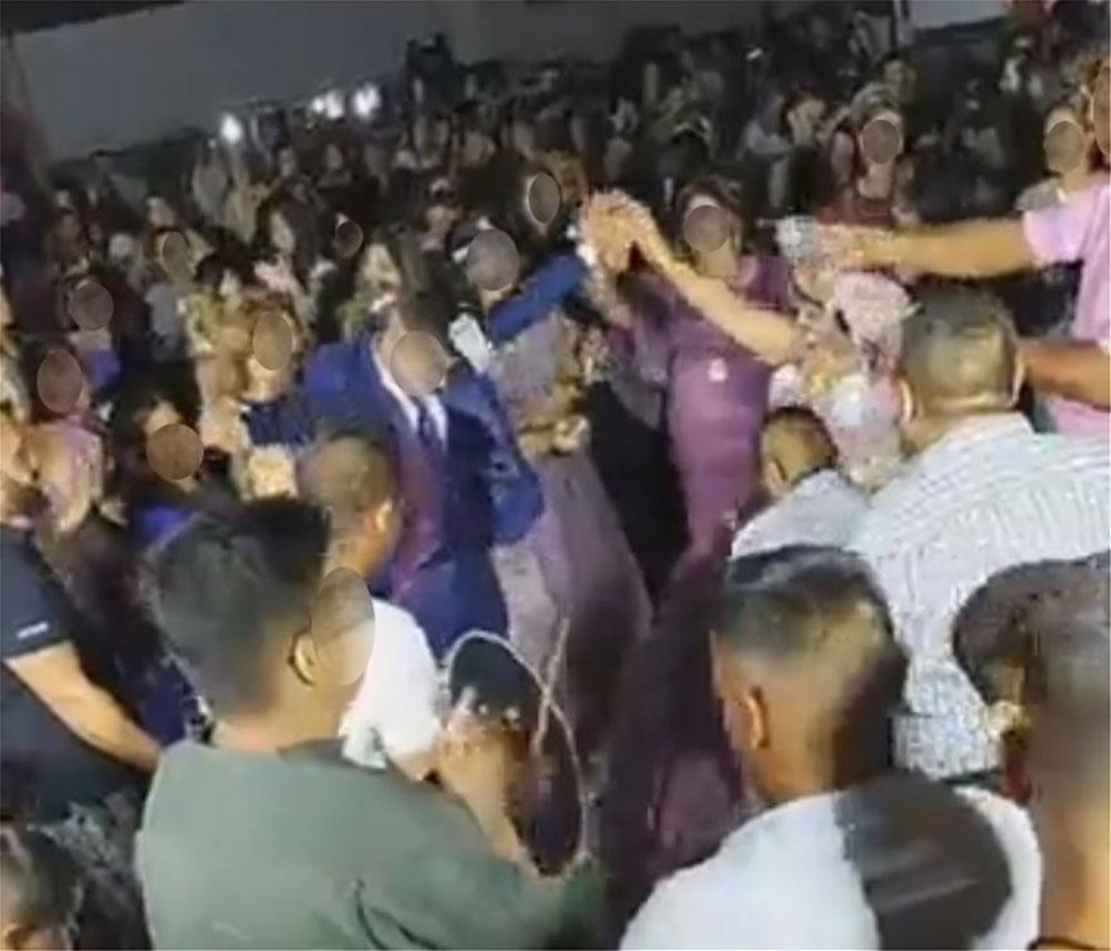 Όπως φαίνεται στις φωτογραφίες και στα βίντεο, δεκάδες άτομα παρευρέθηκαν στον γάμο, χωρίς να τηρείται κανένα μέτρο προστασίας από τον κορωνοϊό.