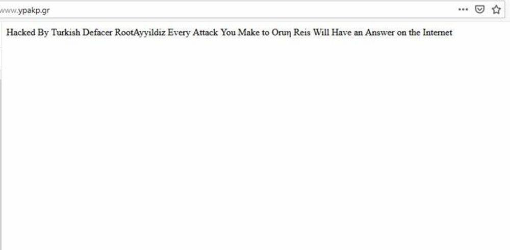 Όταν ανοίγει η ιστοσελίδα του υπουργείου εμφανίζεται το μήνυμα ότι η σελίδα έχει χακαριστεί.