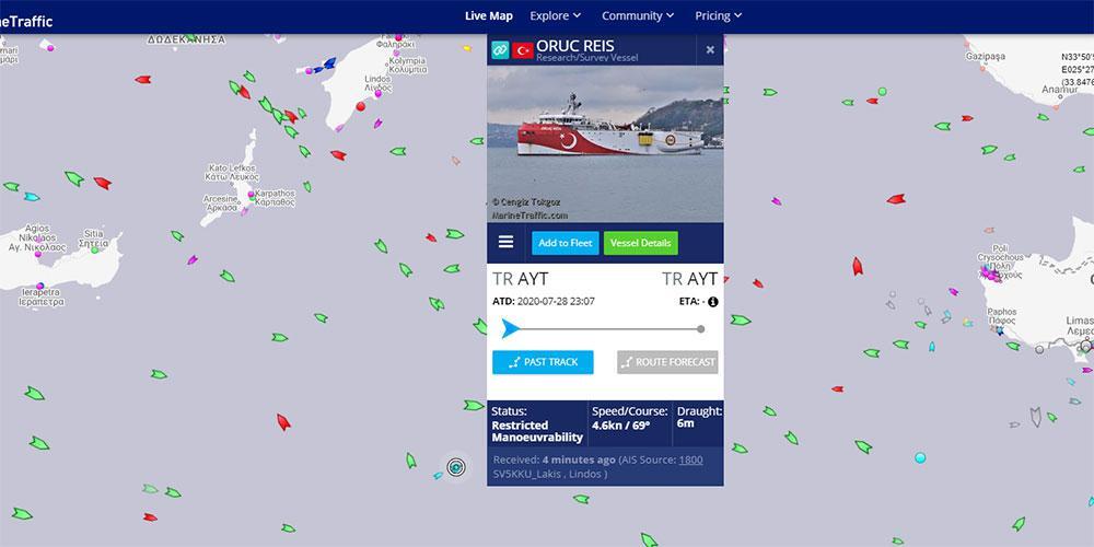 Το «Oruc Reis» συνοδεύεται από βοηθητικά σκάφη και μονάδες του τουρκικού Ναυτικού και οι κινήσεις τους παρακολουθούνται από μονάδες και μέσα των ελληνικών Ενόπλων Δυνάμεων.