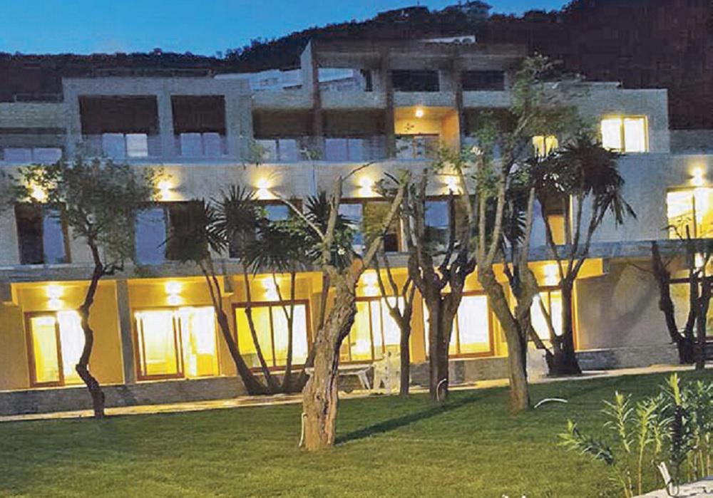 Το παλιό ξενοδοχείο μετά την αγορά του από τους Καταριανούς άλλαξε εντελώς «πρόσωπο» για να υποδεχθεί τους απαιτητικούς ιδιοκτήτες του. Με φόντο τα σμαραγδένια νερά που ξεδιπλώνονται μπροστά από την ιδιοκτησία, δημιουργήθηκε ένα μοναδικής για τα ελληνικά δεδομένα πολυτέλειας ιδιωτικό κατάλυμα με πέτρινες πινελιές δίπλα στο κύμα. Εντυπωσιακά βιτρό, καλαίσθητα ψηφιδωτά στους τοίχους και τα δάπεδα αλλά και μάρμαρα που στοιχίζουν μια περιουσία κοσμούν όλους τους χώρους στο εσωτερικό και το εξωτερικό του κτίσματος. Διαχωριστικά από γυαλί με λευκά βότσαλα και κρυφούς φωτισμούς συμπληρώνουν το υψηλής αισθητικής αποτέλεσμα. Ολα τα υλικά είχαν επιλεγεί ώστε να βρίσκονται σε απόλυτη αρμονία με το φυσικό περιβάλλον ενώ η πέτρινη σκάλα καταλήγει από τα δωμάτια του πρώτου ορόφου σχεδόν μέσα στη θάλασσα.