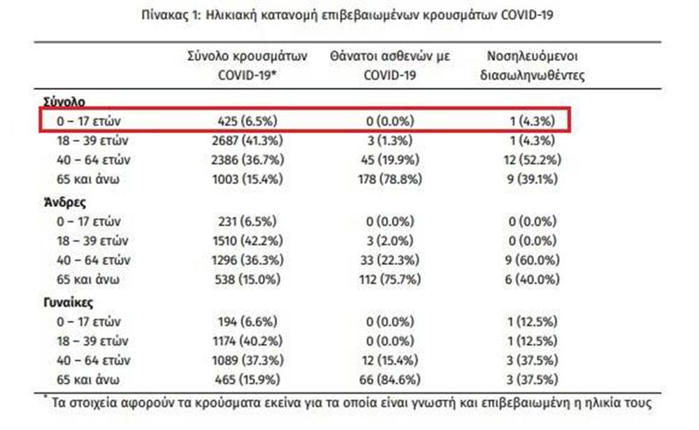 Συγκεκριμένα, όπως μαρτυρούν τα στοιχεία του ΕΟΔΥ, ανάμεσα στους 23 συμπολίτες μας που νοσηλεύονται διασωληνωμένοι βρίσκεται και ένα ανήλικο κορίτσι στην ηλικιακή κατηγορία 0-17, στην υποκατηγορία των γυναικών.