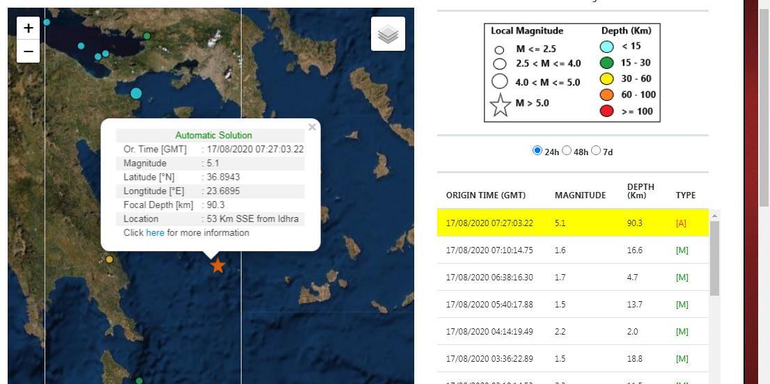 Σύμφωνα με το Γεωδυναμικό Ινστιτούτο ο σεισμός ήταν της τάξης των 5,1 βαθμών της κλίμακας Ρίχτερ με το επίκεντρο να εντοπίζεται σημειώθηκε ανοιχτά της Ύδρας.