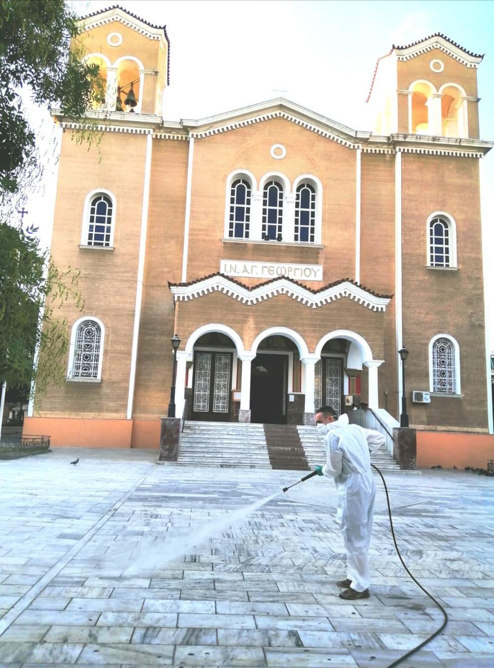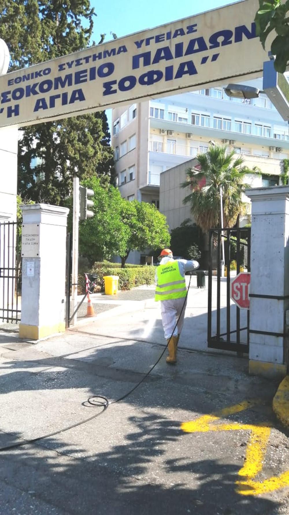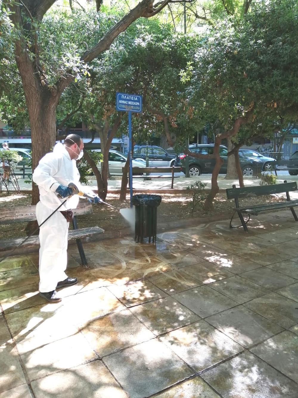 Τα γραφεία καθαριότητας και των επτά Δημοτικών Κοινοτήτων έχουν εκπονήσει εβδομαδιαίο προγραμματισμό ανά ημέρα και βάρδια δίνοντας έμφαση σε πολυσύχναστους δημόσιους χώρους (πλατείες και πεζόδρομους) αλλά και σε σημεία υγειονομικού ενδιαφέροντος (νοσοκομεία, φαρμακεία, σούπερ μάρκετ, φούρνους κλπ). Η απολύμανση όλων αυτών των σημείων γίνεται με καυτό νερό (σχεδόν 100 βαθμών Κελσίου) που εκτοξεύεται με πίεση.