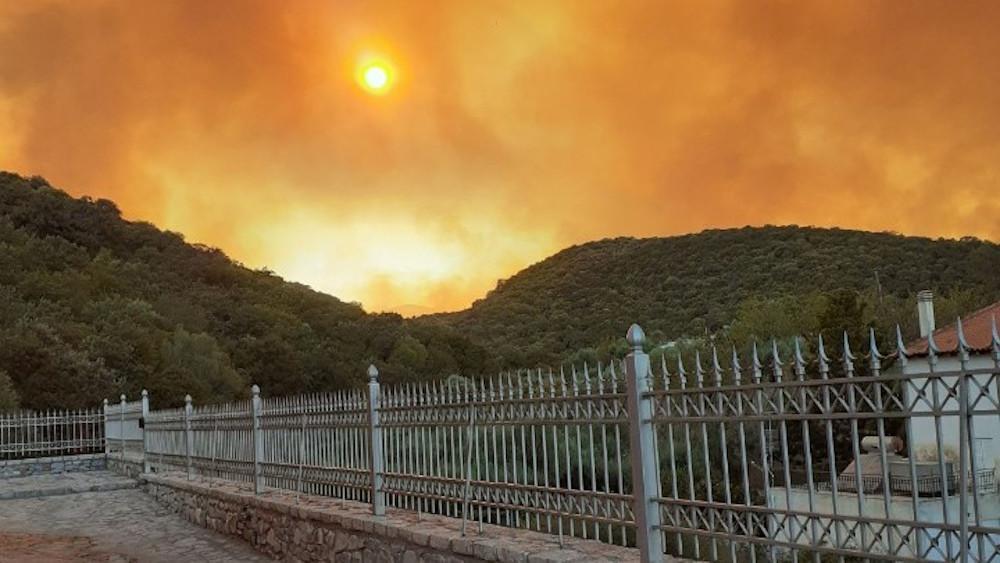 Στην περιοχή πνέουν χαμηλής έντασης άνεμοι που διευκολύνουν το έργο της κατάσβεσης.
