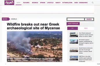 Αναλυτικό ρεπορτάζ για τη φωτιά που ξέσπασε στο σημείο ανήρτησε στην ιστοσελίδα του το αραβικό δίκτυο Al Jazeera, που αναφέρει ότι οι φλόγες «έγλειψαν» κάποια σημεία του αρχαιολογικού χώρου αλλά δεν απειλήθηκε το μουσείο. Το Al Jazeera υπενθυμίζει πως «το 2007, πυρκαγιά απείλησε ναούς και στάδια της Αρχαίας Ολυμπίας, γενέθλιο τόπο των Ολυμπιακών Αγώνων». Σχετικό ρεπορτάζ φιλοξένησε το Al Arabiya, σημειώνοντας πως 27 πυροσβέστες επιχείρησαν στο σημείο με τη συνδρομή ενός ελικοπτέρου και δύο αεροσκαφών.