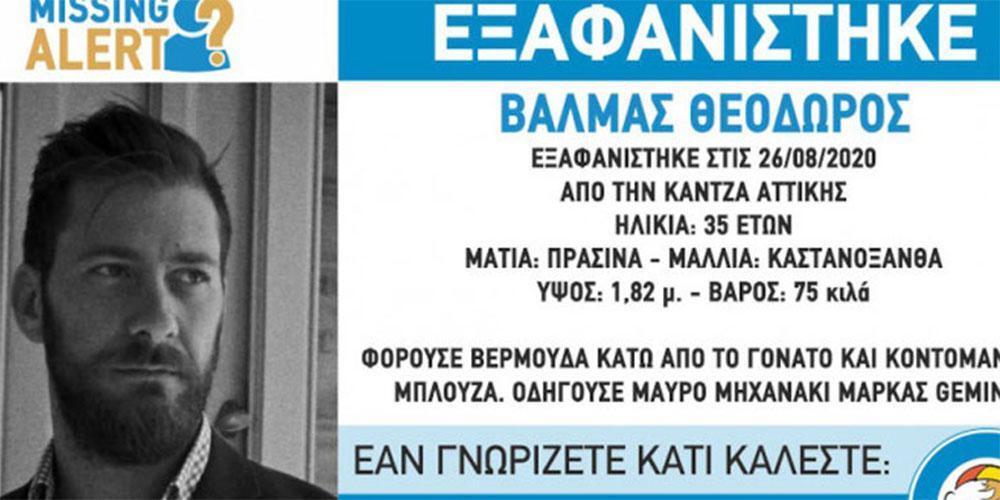 «Στις 26/08/2020, εξαφανίστηκε από την περιοχή της Κάντζας, ο Θεόδωρος Βαλμάς, 35 ετών. Το ”Χαμόγελο του Παιδιού” ενημερώθηκε για την εξαφάνιση του Θεόδωρου Βαλμά στις 03/09/2020 και προχώρησε στη δημοσιοποίηση των στοιχείων του ενήλικου κατόπιν αιτήματος των συγγενών του, καθώς ενδέχεται να συντρέχουν λόγοι οι οποίοι θέτουν τη ζωή του σε κίνδυνο».
