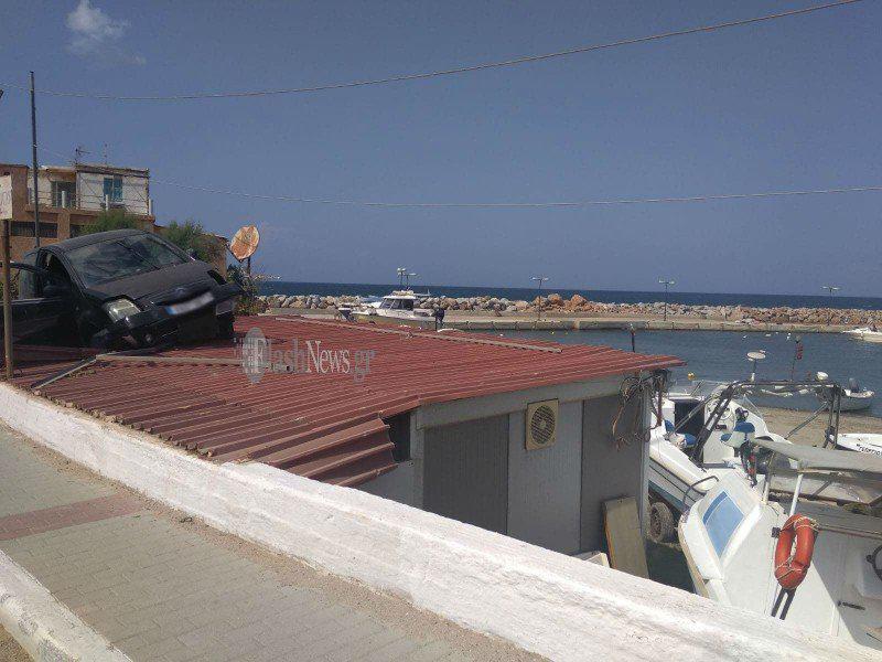 Στην παλαιά εθνική οδό Κισσάμου – Χανίων, ένα αυτοκίνητο ξέφυγε – κάτω από άγνωστες μέχρι στιγμής συνθήκες – από την πορεία του και προσγειώθηκε πάνω σε μία σκεπή.