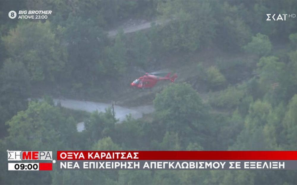 Χθες στον αποκλεισμένο οικισμό Δάφνη της Οξυάς στο Μουζάκι, Super Puma πέταξε τρόφιμα, νερά και φάρμακα. Σήμερα θα γίνει από αέρος ξανά χορήγηση ειδών πρώτης ανάγκης και στους άλλους οικισμούς στην περιοχή της Αργιθέας.