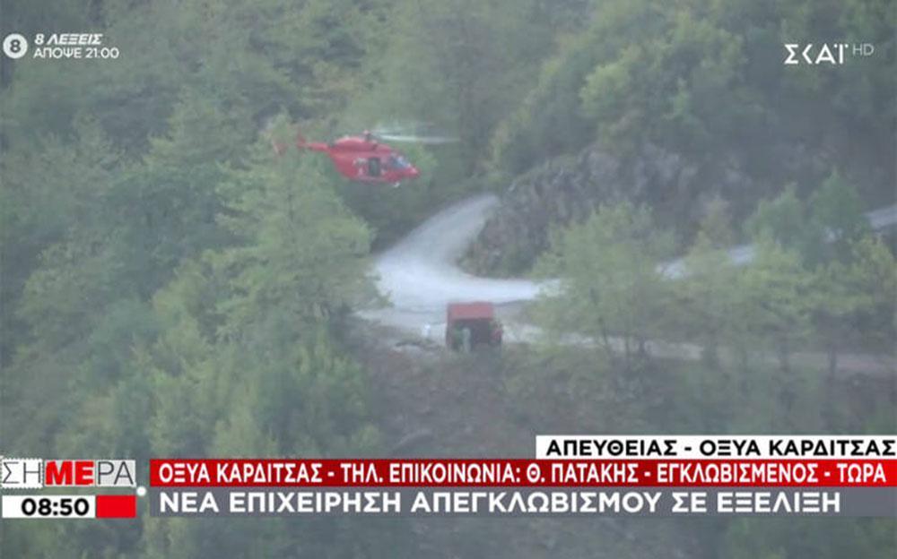 Ήδη Super Puma της πυροσβεστικής κατάφερε να προσεγγίσει το μοναστήρι της Αγίας Τριάδας, στην Οξυά. Μέσα στο μοναστήρι, σύμφωνα με μία εκ των διασωθέντων, υπάρχουν άλλοι έξι άνθρωποι εκεί.