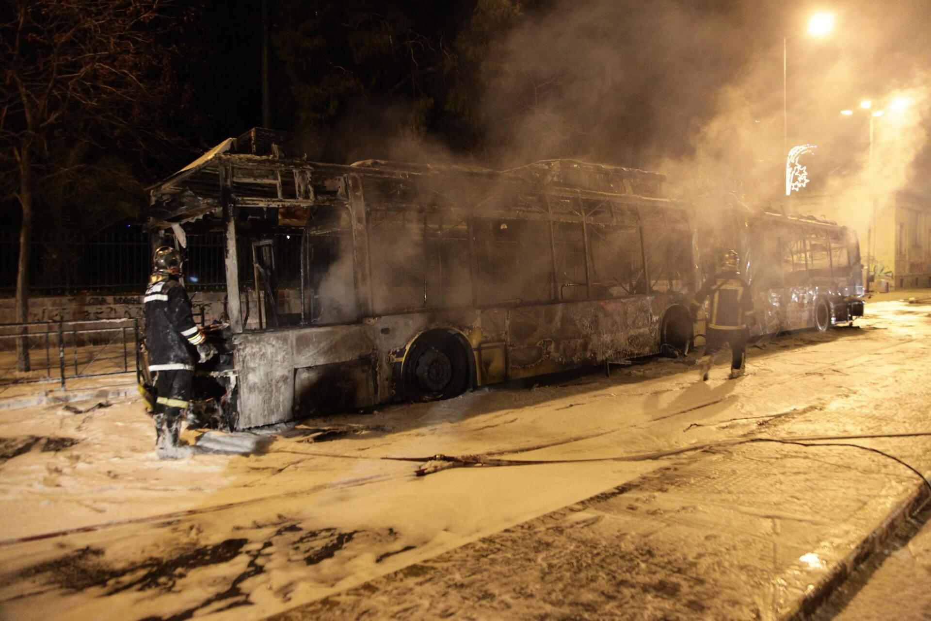 Αστυνομικές πηγές αναφέρουν πως ομάδα νεαρών σταμάτησε τα τρία οχήματα, κατέβασαν κάτω τους επιβάτες και αφού περιέλουσαν τα τζάμια με εύφλεκτο υλικό πέταξαν βόμβες μολότοφ και τα πυρπόλησαν.