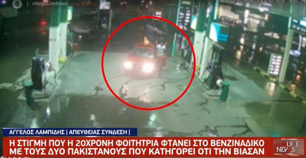 Στο βίντεο φαίνεται η στιγμή που οι δύο άντρες μαζί με την κοπέλα σταματούν σε ένα βενζινάδικο.