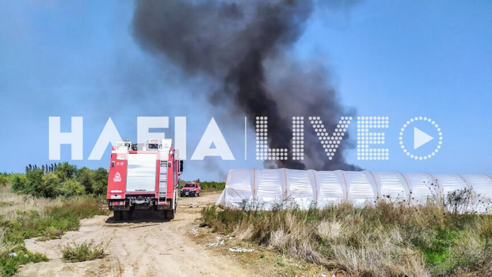 Η φωτιά λόγω των καιρικών συνθηκών έλαβε διαστάσεις και καίει κοντά σε θερμοκήπια.