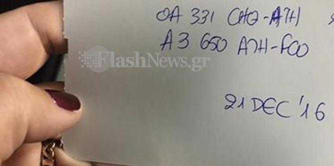 Όπως αναφέρει το flashnews.gr, το ηλεκτρονικό σύστημα του αεροδρομίου είχε… «πέσει» κι έτσι οι υπάλληλοι αναγκάστηκαν να δώσουν στους επιβάτες της πρωινής πτήσης πρόχειρα κομμένα χαρτάκια, στα οποία αναγράφονταν χειρόγραφα τα στοιχεία τους και τα στοιχεία της πτήσης.