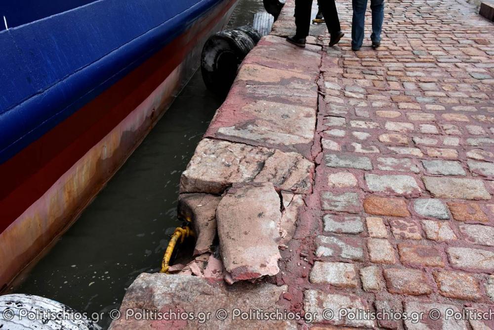 Από την πρόσκρουση ξηλώθηκε το πάνω τμήμα της προκυμαίας, κατά μήκος του πεζοδρομίου, χωρίς πάντως, να επηρεαστεί η κυκλοφορία των οχημάτων στο δρόμο.