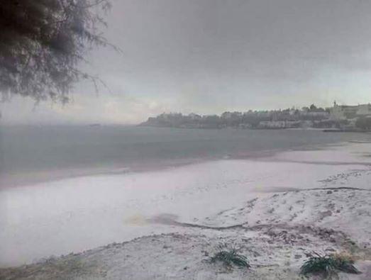 Για πρώτη φορά, στα τελευταία 25 χρόνια, η παραλία του Μακρύ Γιαλού άσπρισε από το χιόνι, που σκέπασε την άμμο και έφτασε μέχρι τη θάλασσα, σύμφωνα με τις φωτογραφίες που δημοσίευσε το cretapost.gr.