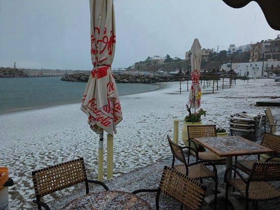 Στην Ιεράπετρα το χιόνι έφτασε μέχρι την παραλία και σύμφωνα με τους κατοίκους της περιοχής τέτοιο θέαμα είχαν να δουν εδώ και 25 χρόνια.
