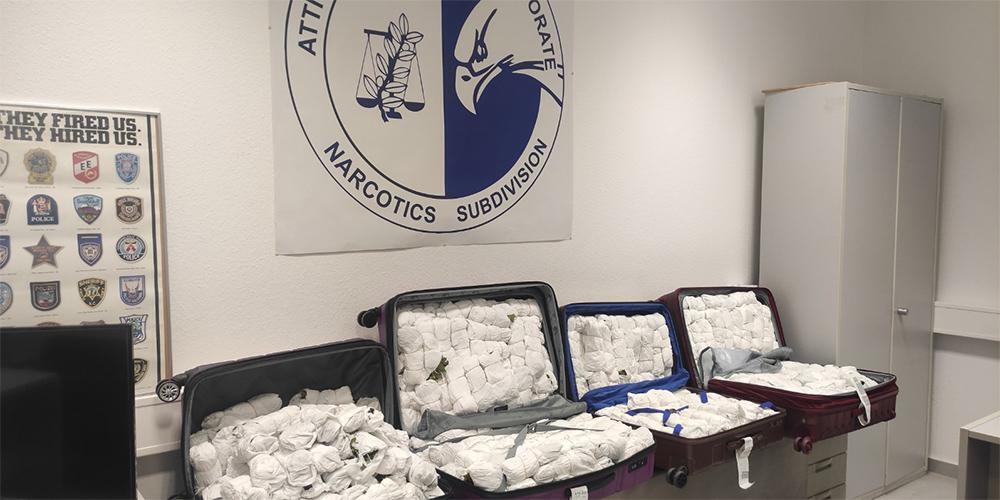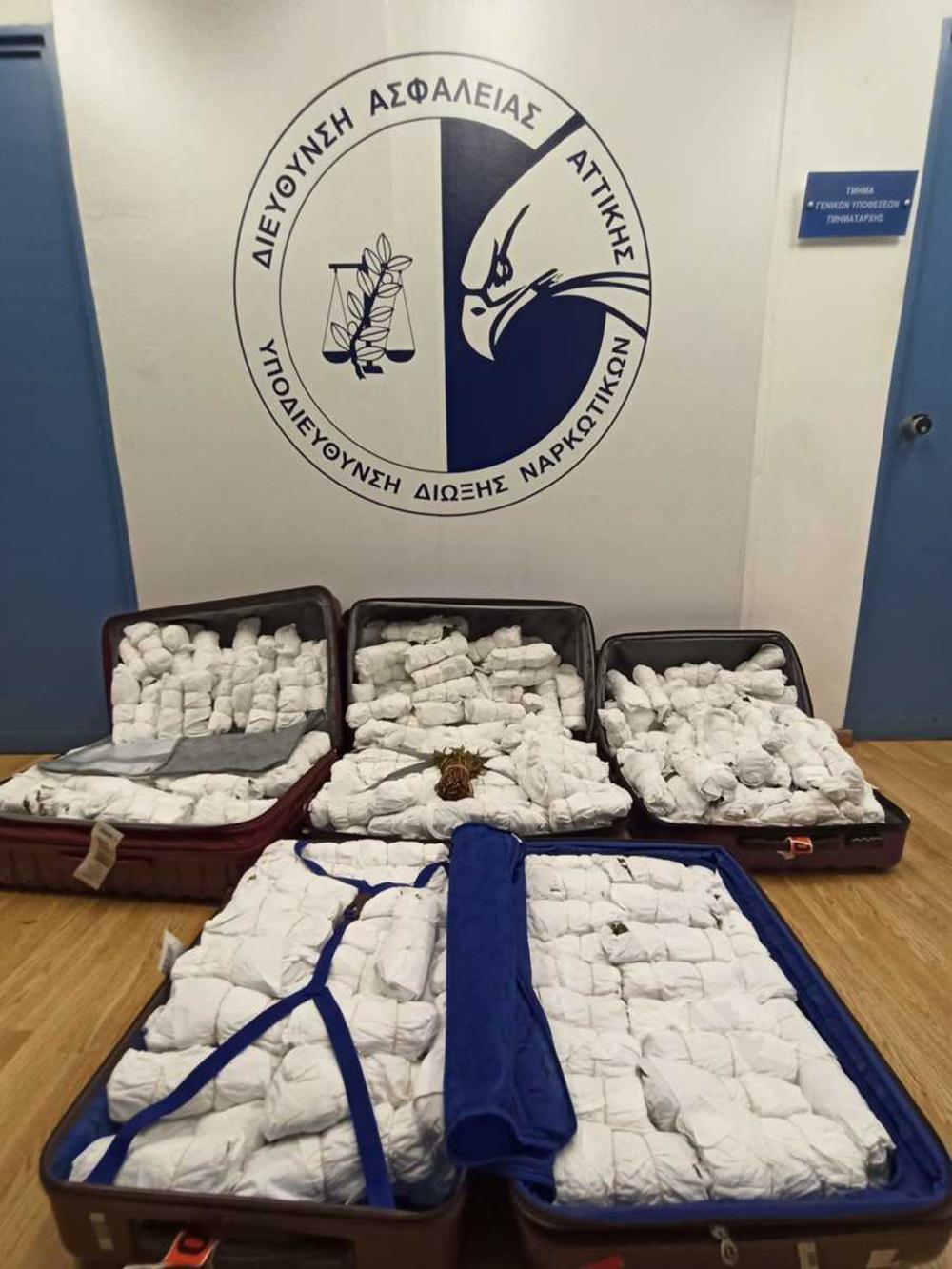 Σύμφωνα με την ΕΛ.ΑΣ, σε τέσσερις βαλίτσες μετέφεραν 97,5 κιλά του ναρκωτικού khat, ποσότητα που κατασχέθηκε.