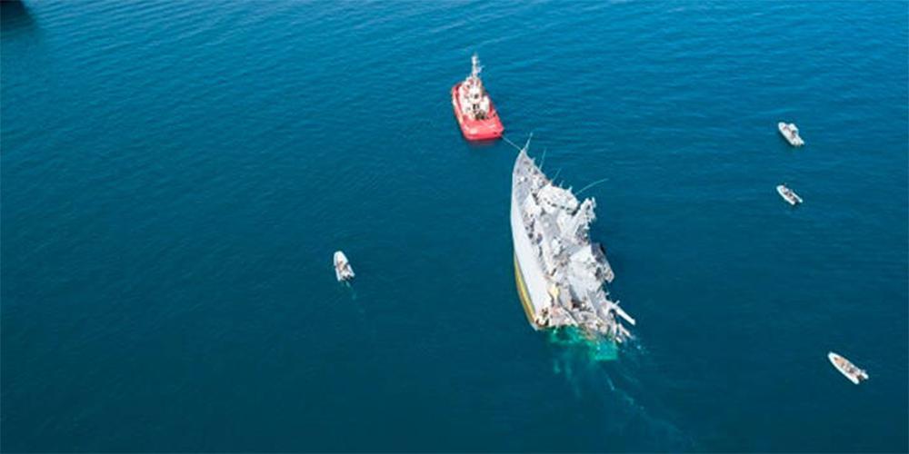 Το arxipelagos.gr δημοσιεύει πανοραμικές φωτογραφίες και βίντεο από drone που δείχνουν από ψηλά τη ζημιά στο πλοίο του πολεμικού ναυτικού