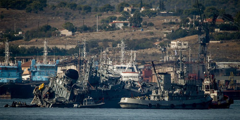 Από την πρόσκρουση των δύο πλοίων δύο αξιωματικοί μεταφέρθηκαν στο νοσοκομείο με κατάγματα.