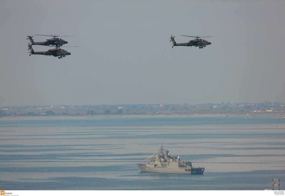 Στην Αθήνα πέταξαν τέσσερα Mirage 2000-5 της Πολεμικής Αεροπορίας, έξι ελικοπτέρων της Αεροπορίας Στρατού και δύο του Πολεμικού Ναυτικού πάνω από την πλατεία Συντάγματος.